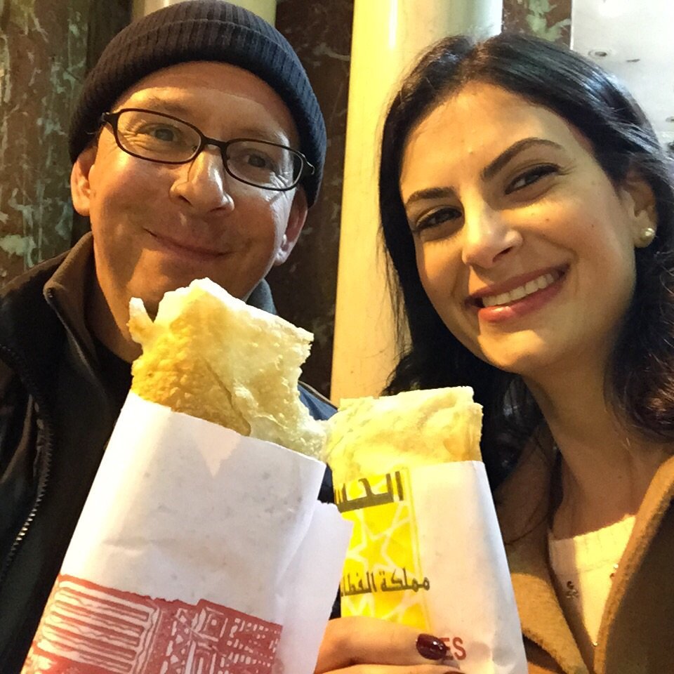 Eating sweets with Mehri in Khan el Khalili – right after checking out a shop selling all sorts of protected animal parts.