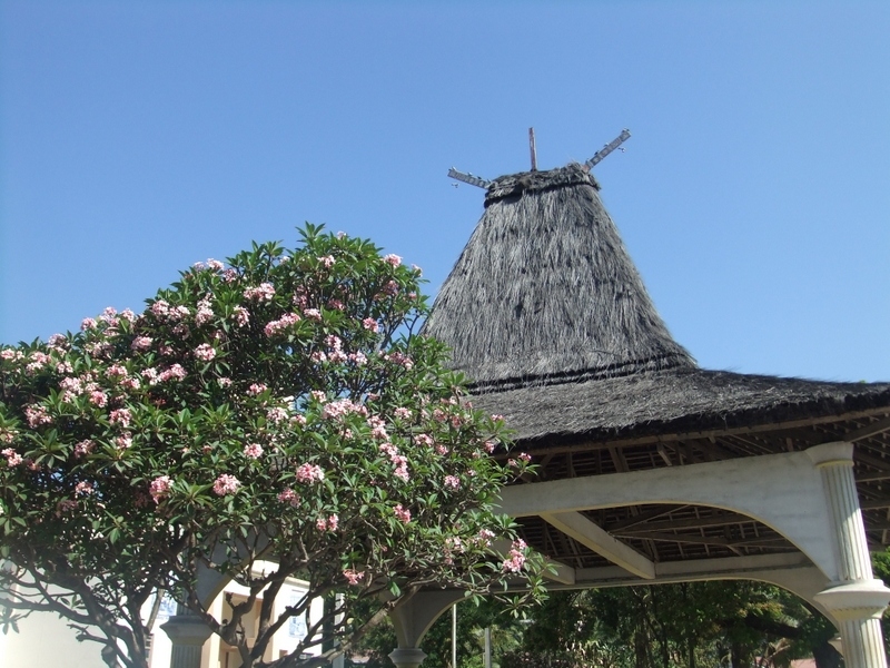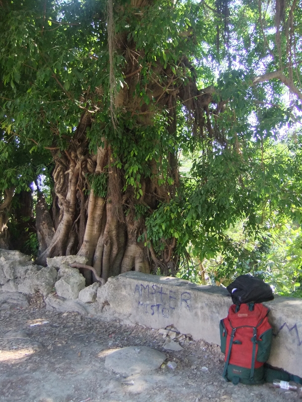 The next morning, I set out for Com. According to the guesthouse I had to walk up to the roundabout and wait for the bus to Los Palos. It should cost USD3. The roundabout had a beautiful old banyan tree with a wall under it and seemed to be the main bus stop. The young students waiting on the wall were friendly and we chatted for a while. And the bus didn’t come. And it didn’t come. And then it came. But it was totally packed full – so I waited for the next one. When that one came, it was also full but I squeezed out my 1 square foot and off we went. My plan was to disembark in the town of Lautem where the coastal road veers south to the interior capital of Los Palos. Lautem came before I was expecting and I was so happy to get away from the bus and the chain smokers and the demonic goat.