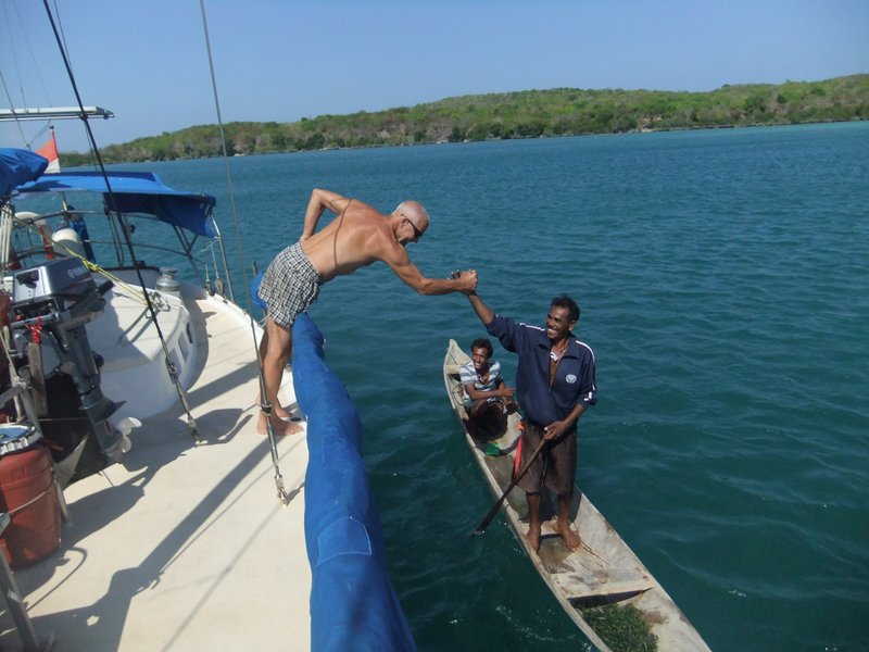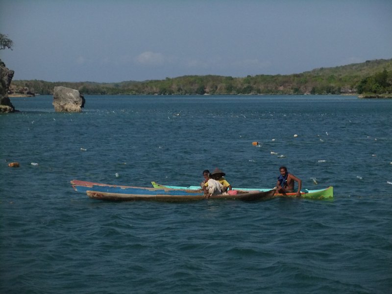 Eric voted against seeing the islands but Hans and I were interested so we ventured into the northern end of the bay to see what there was to see. The north wind was strong as we motored into the bay. At the deepest part of the bay we found a village that seemed to be straight out of the stone age. At that point we also realized that we had sailed into the middle of a seaweed farm and the farmers onshore were increasingly distressed as they rushed to their canoes to intercept us. Luckily Hans knows his craft well and we managed to get out of the maze of ropes without any casualties and went in search of a better channel.