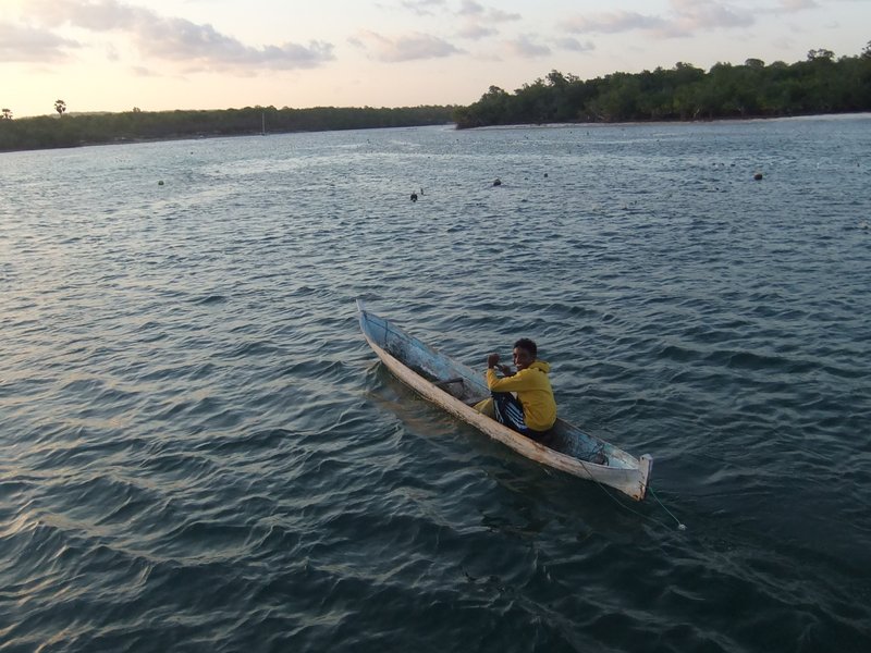 As we got through one particularly tight squeeze, a young seaweed farmer hailed us and asked for a lift. Of course we obliged and he paddled over and tied his little canoe to the boat and guided us through the next sections. Ganesh is a 19 year old seaweed farmer from the village at the end southern end of the channel. He has a wife (Estheri) and a 1 year old baby girl (Geisha) and makes a good living selling his produce. Ganesh guided us to the entrance of the channel to the Indian Ocean but we couldn’t clear the reef at low tide so we headed back into a protected lagoon to spend the night and wait for the next high water.